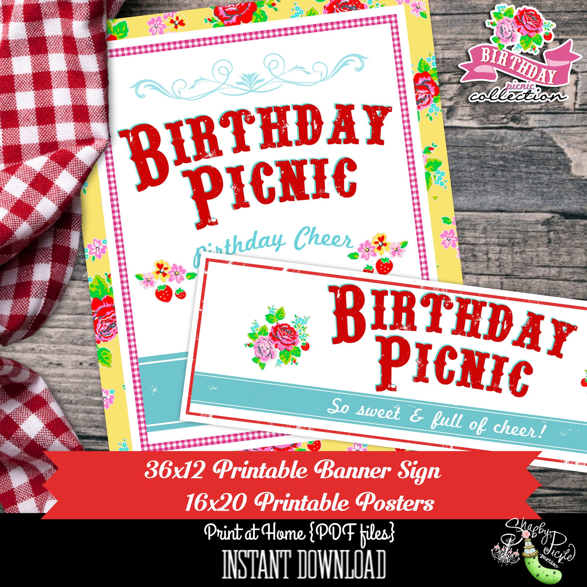 Birthday Party Picnic-Poster-Banner-Party Printables-Farmers Market-BBQ-Birthday Banner-Outdoor-Digital Decorations-Instant Download