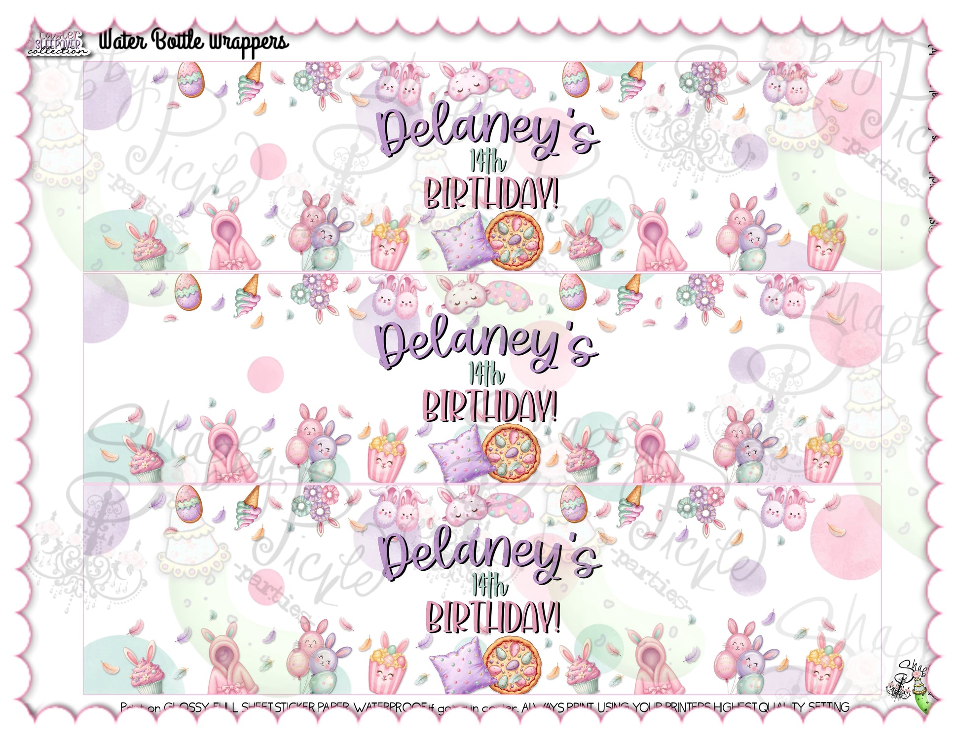 Easter Sleepover-Water Bottle Labels-Edit in Corjl ONLY-Easter Slumber Party-Water Bottle Wrapper-Easter Birthday-Easter Party-Happy Birthday-Birthday Sleepover-Birthday Slumber Party-INSTANT DOWNLOAD