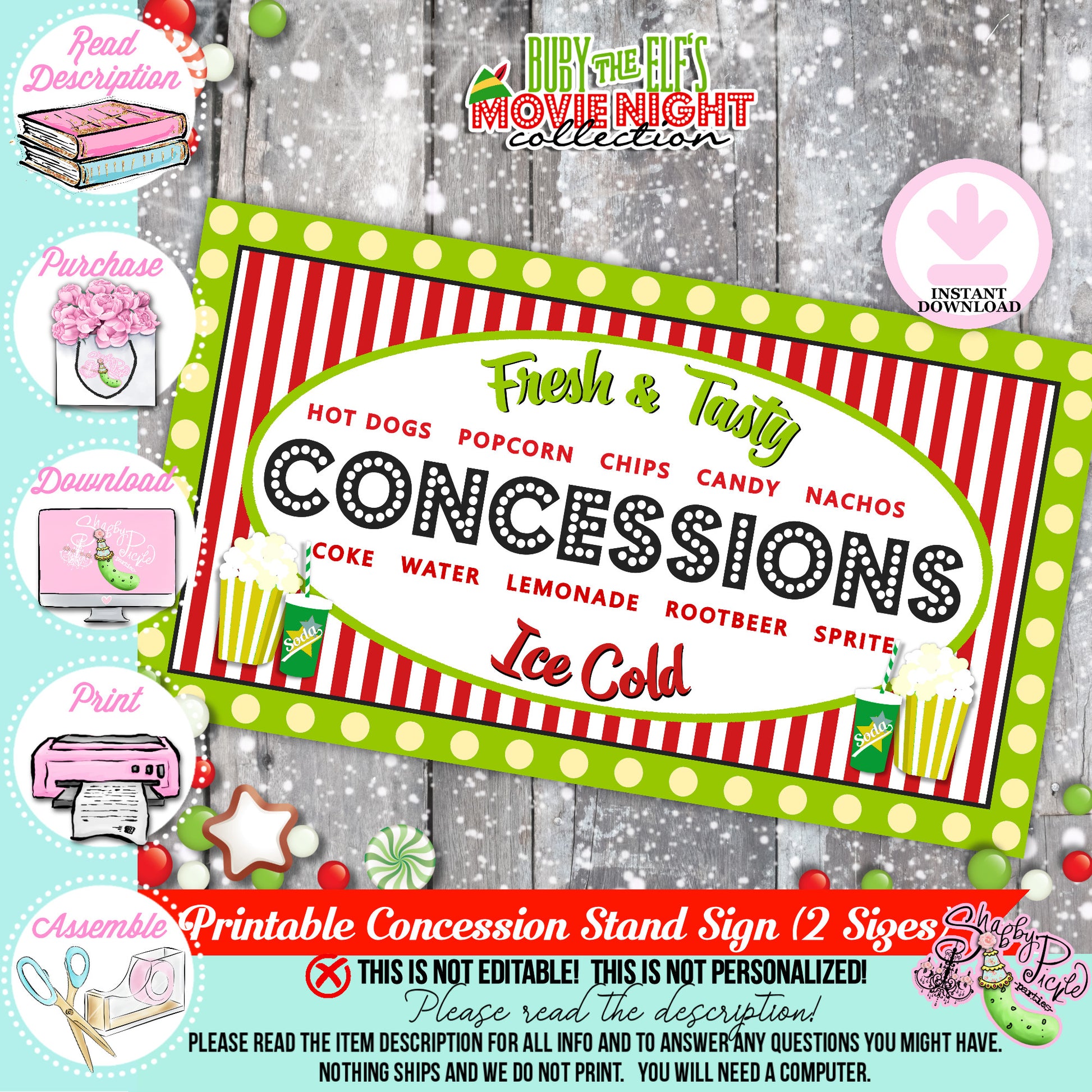 Christmas-Concession Stand Sign-Party Signs-2 Sizes-Movie Concessions-Printable-Party Printable-Digital-INSTANT DOWNLOAD