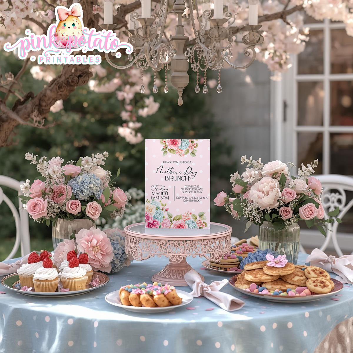 Mother's Day Brunch-Invitation-Customize All Text in Corjl ONLY-Mothers Day Party-Mother's Day Lunch-Potluck Party-Grandmother-Grandma-Mama-Mommy-Mom-INSTANT DOWNLOAD