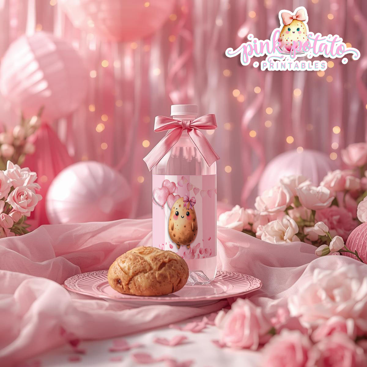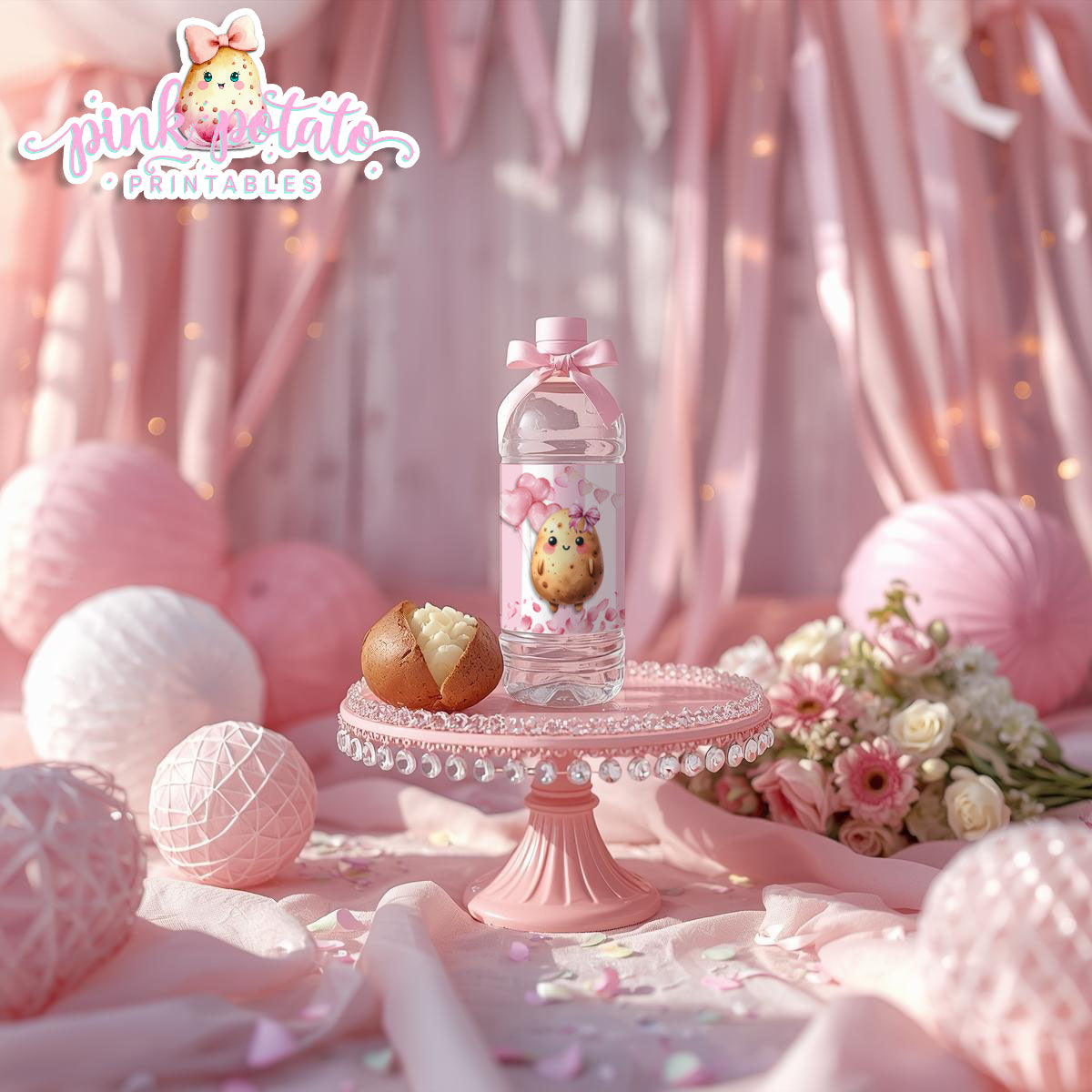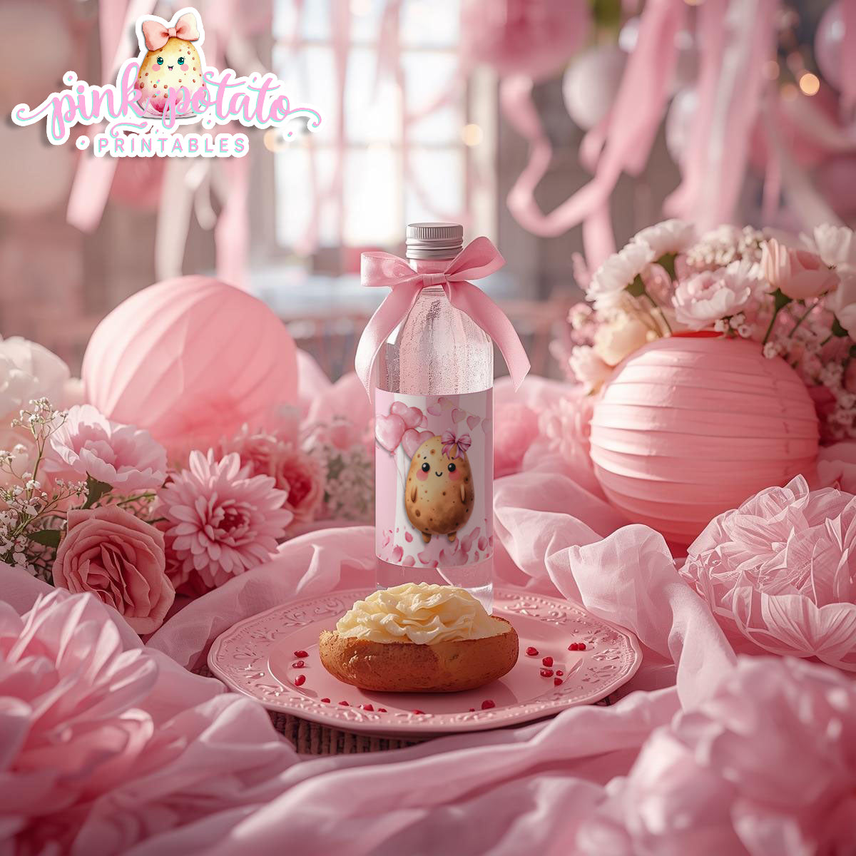 Pink Valentine-Baked Potato Bar-Water Bottle Labels-Valentine's Day-Waterbottle-Valentine's Party-INSTANT DOWNLOAD