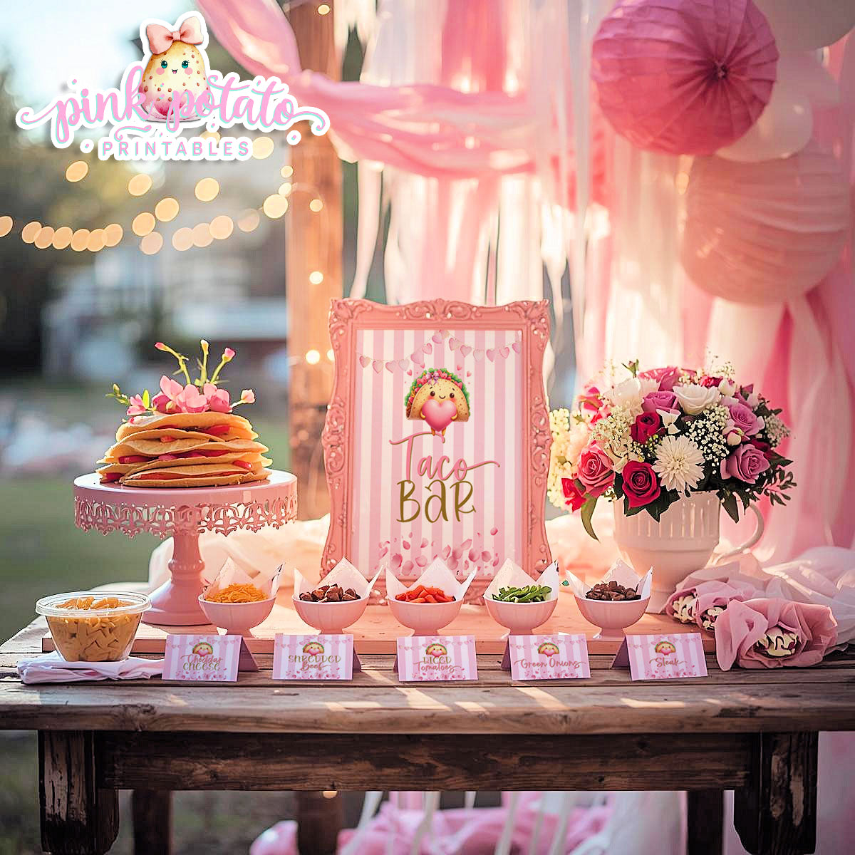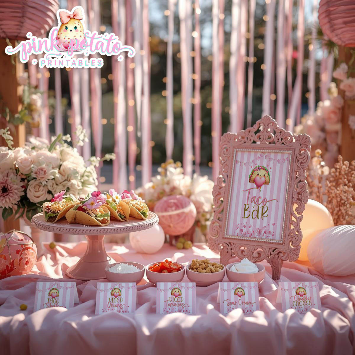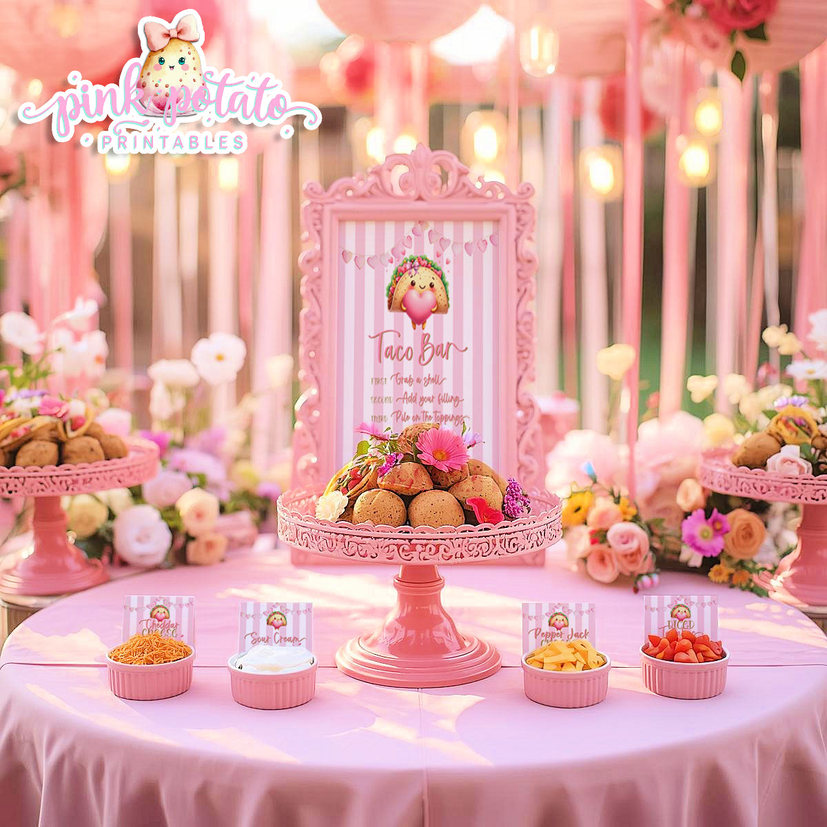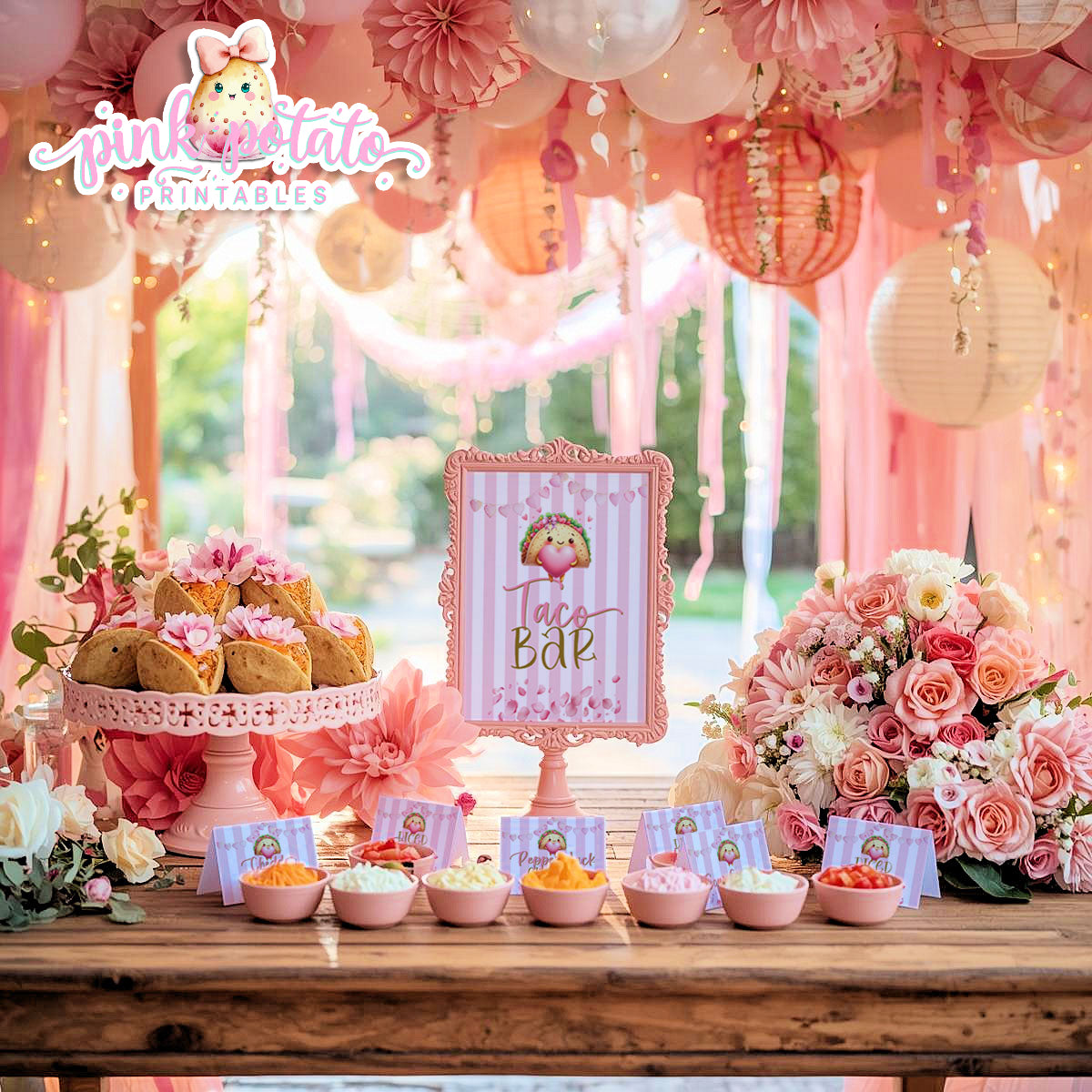 Pink Valentine-Taco Bar-Signs & Buffet Cards-Tent Cards-8x10 Signs (2)-Valentine's Day-Buffet-Valentine's Party-PREFILLED PDF-EDITABLE IN CORJL ONLY-INSTANT DOWNLOAD