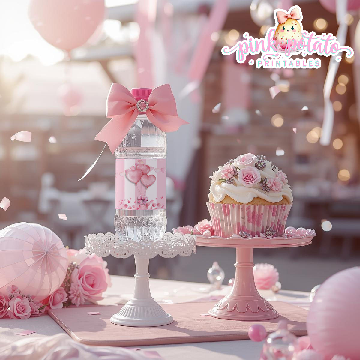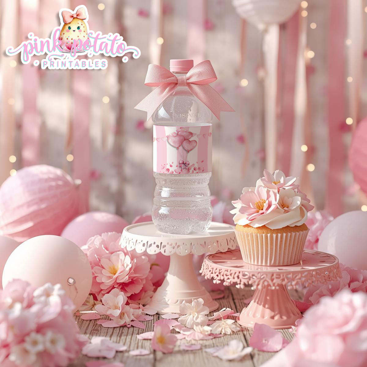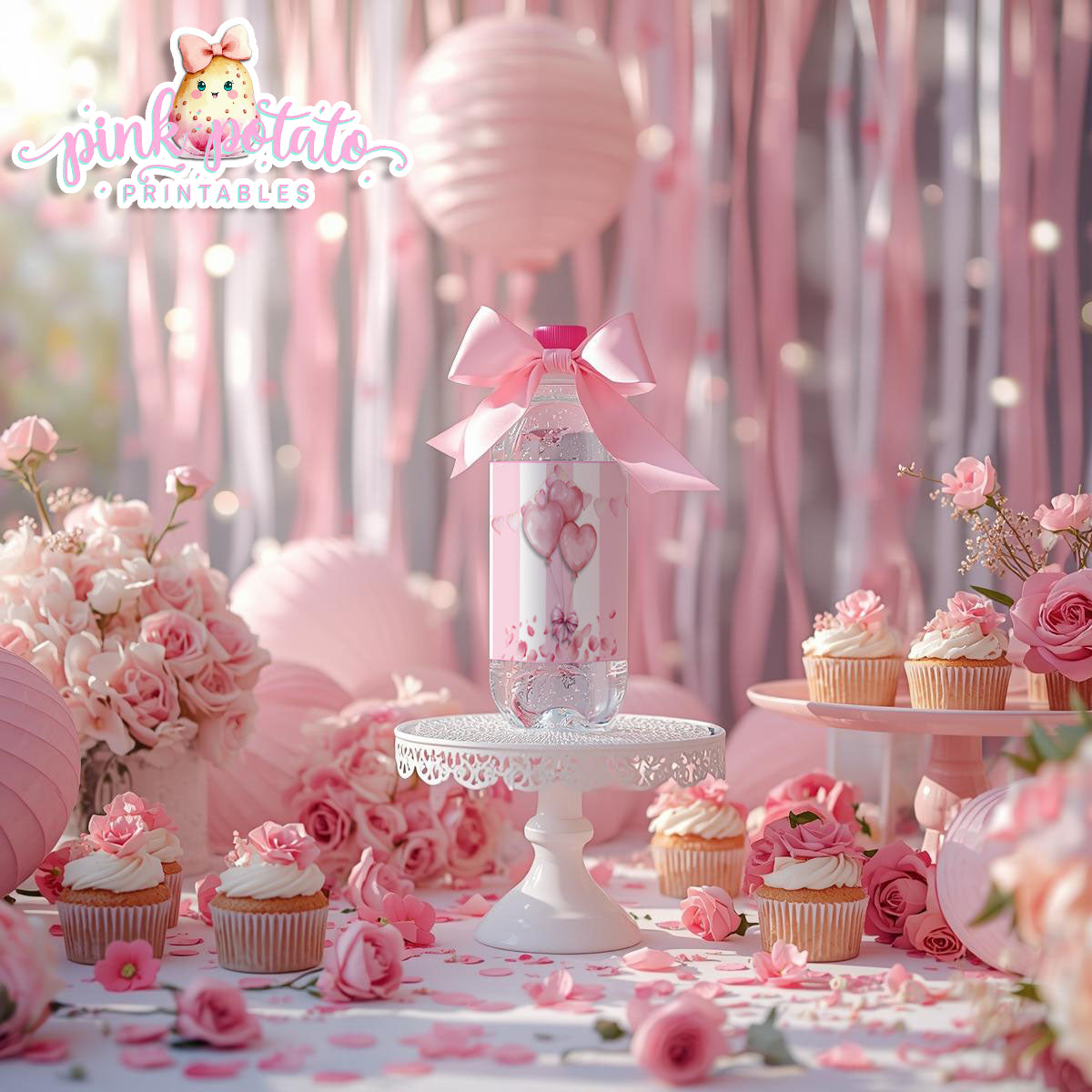 Pink Valentine-Water Bottle Labels-Valentine's Day-Waterbottle-Valentine's Party-INSTANT DOWNLOAD