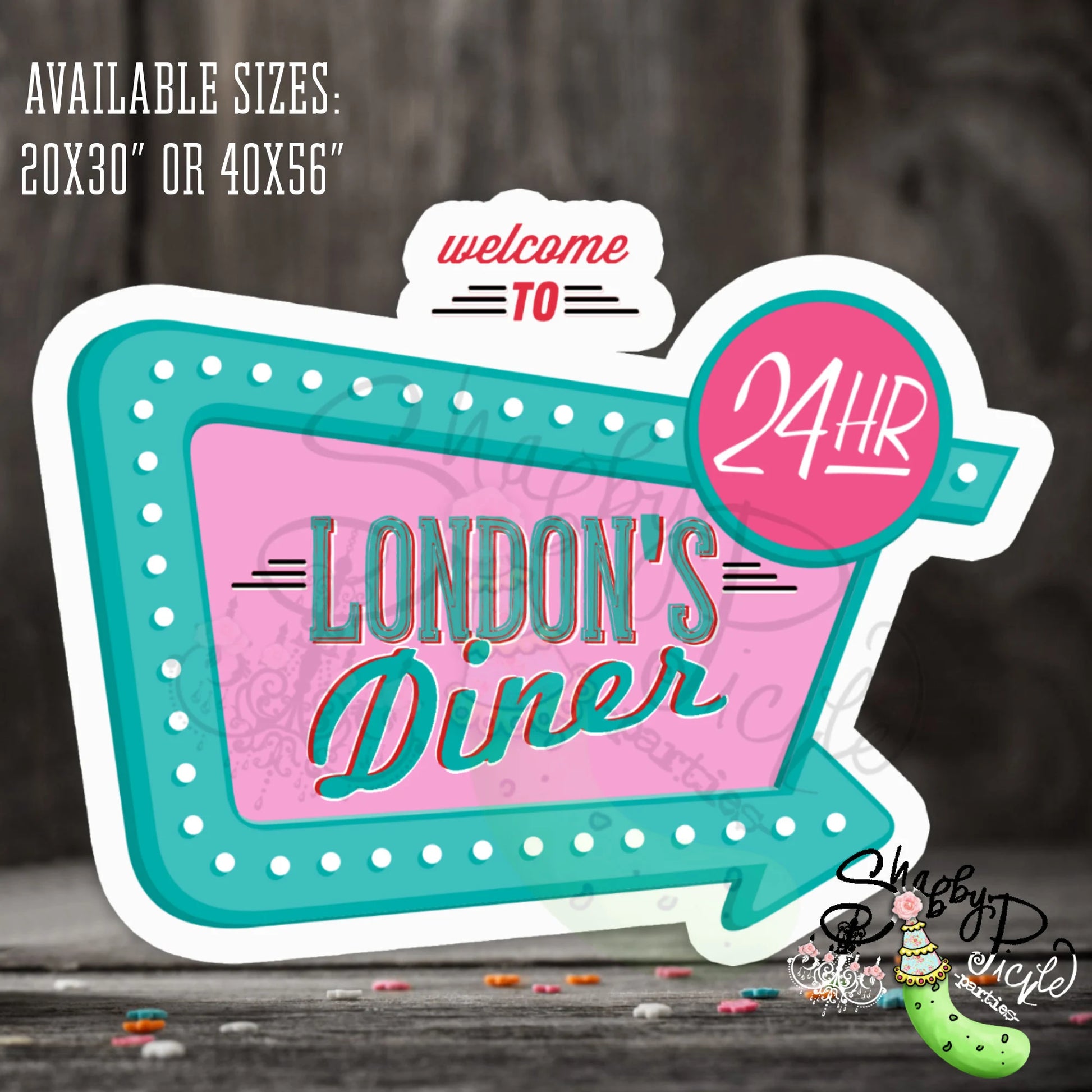 Pinks Diner or Retro Diner-We Customize-Backdrop-Sign-Party Logo-Retro-50's Diner-Party PRINTALBE-Birthday-1950s-50s Party-DIGITAL DOWNLOAD