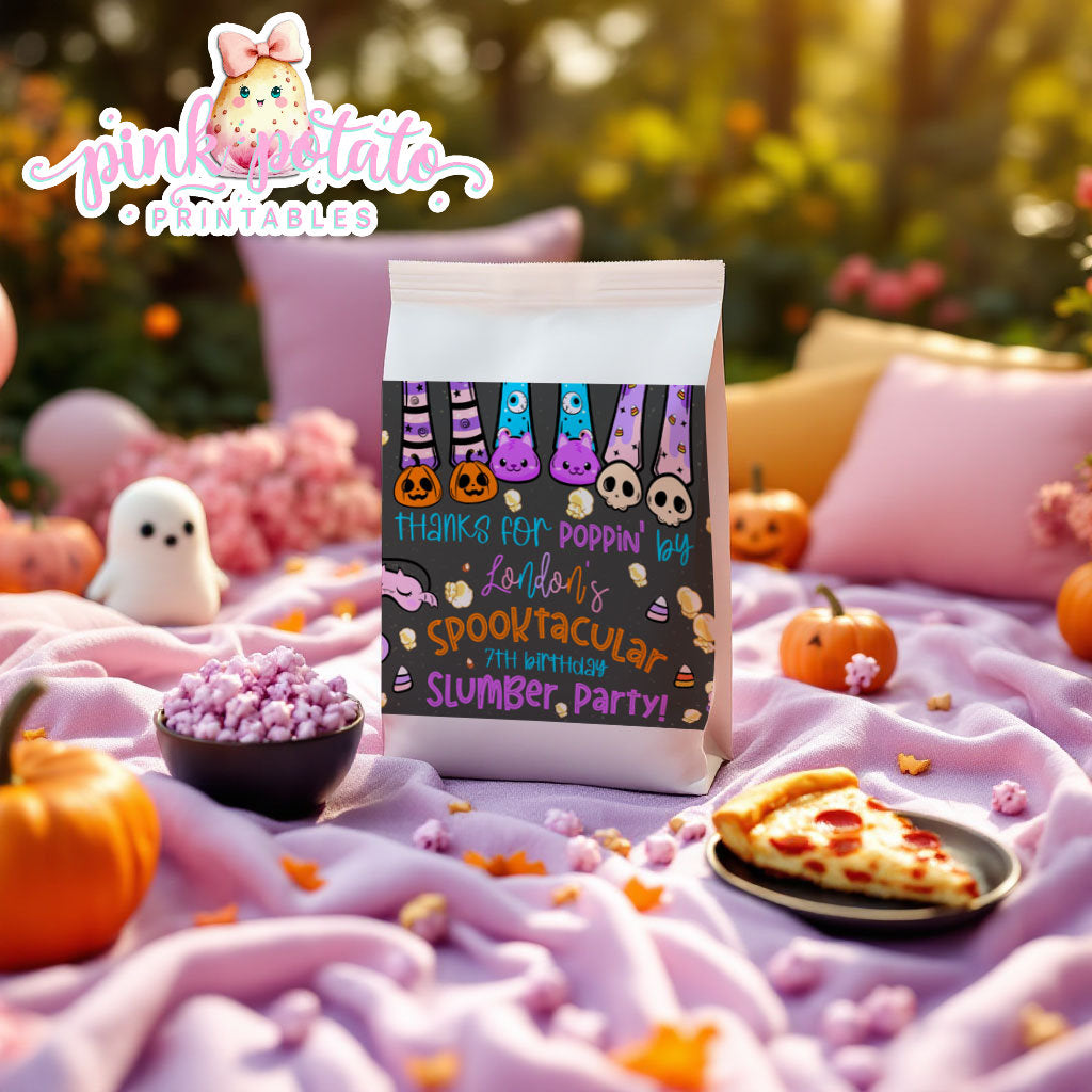 Spooktacular Slumber Party-Microwave Popcorn Wrapper-We Customize-Personalize Name-Favor Labels-Sleepover-Halloween-Digital-DIGITAL DOWNLOAD